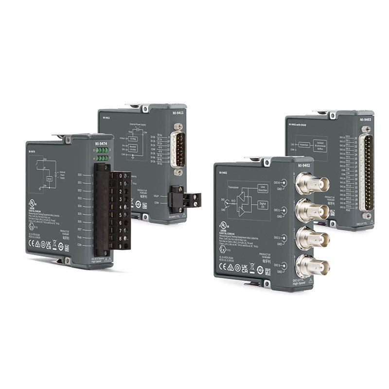 The NI‑9423 works with industrial logic levels and signals to connect directly to a wide array of industrial switches, transducers, and devices. Each channel is compatible with 24 V logic levels, can accept up to 30 V discrete logic levels, and has an LED that indicates the status. The NI‑9423 offers isolation between the input and output banks from channel to earth ground. The NI‑9423 is a correlated digital module, so it can perform correlated measurements, triggering, and sychronization when installed in a CompactDAQ chassis.