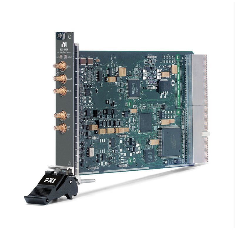 The PXI‑5404 is a 100 MHz clock generator capable of generating clock and sine wave signals and some other standard functions. This clock generator can generate signals from -1 V to +1 V and uses direct digital synthesis (DDS) to precisely generate waveforms.