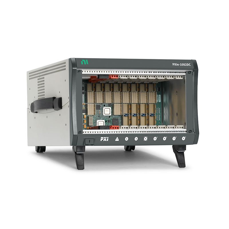 The PXIe‑1082DC features a high-bandwidth backplane to meet a wide range of high-performance test and measurement application needs. It accepts PXI Express modules in every slot and supports standard PXI hybrid-compatible modules in up to four slots. The chassis supports DC inputs from 11 V to 32 V.