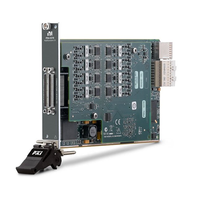 The PXIe‑6378 is a simultaneous sampling, multifunction DAQ device. It offers analog I/O, digital I/O, four 32‑bit counters, and analog and digital triggering. Onboard NI‑STC3 timing and synchronization technology delivers advanced timing functionality, including independent analog and digital timing engines and retriggerable measurement tasks. The PXIe‑6378 is ideal for a variety of applications, such as IF digitization; transient recording; ISDN, ADSL, and POTS manufacturing test in the telecom industry; ultrasound and sonar testing; and high-energy physics. The included NI‑DAQmx driver and configuration utility simplify configuration and measurements.
