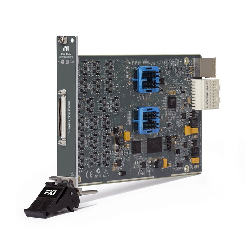 The PXIe‑6535 can continuously stream data over the PXI Express bus. It’s an ideal solution for interfacing and testing image sensors or display panels. The module is also well-suited for other common digital applications such as pattern I/O, change detection, protocol emulation, or other custom digital interfacing. It features selectable voltage levels and per-channel directional control of the digital lines.
