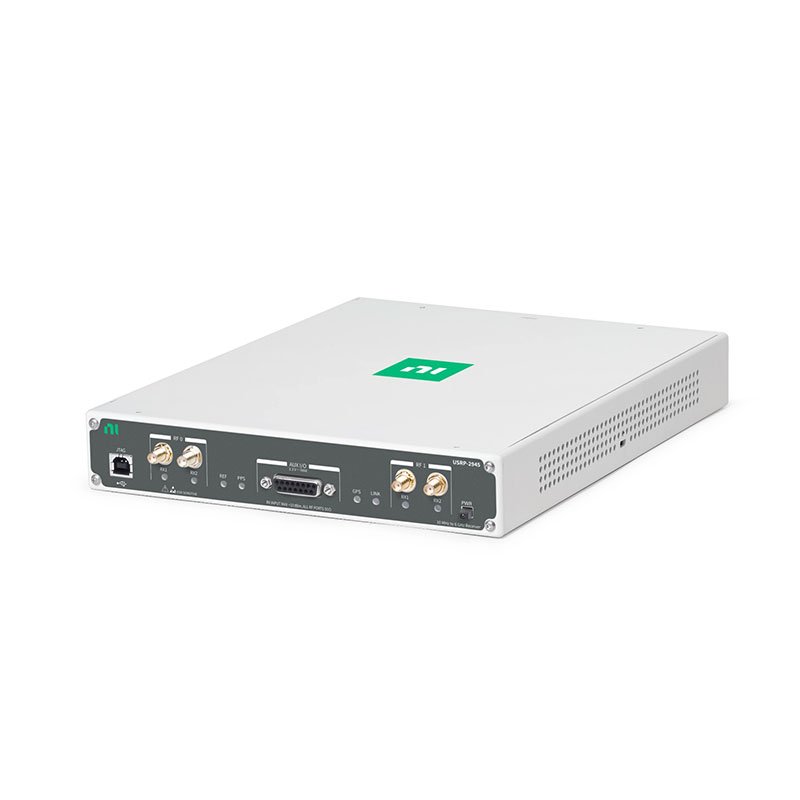 The USRP-2945 provides an integrated hardware and software solution for rapidly prototyping high-performance wireless receiver systems. This software defined radio reconfigurable device is designed for over-the-air signal acquisition and analysis. It features a two-stage superheterodyne architecture with four independent receiver channels and shares local oscillators for phase-coherent operation. It also offers a Kintex-7 FPGA programmable with the LabVIEW FPGA Module. With these features, the USRP-2945 has the RF and processing performance for applications including spectrum monitoring, direction finding, signals intelligence, wideband recording, and radar prototyping.